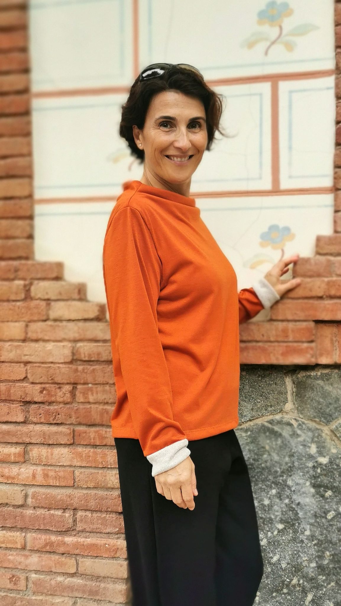 Camiseta de manga larga con cuello barca, elevado y forrado por dentro, y puño en contraste. Camiseta de corte recto.