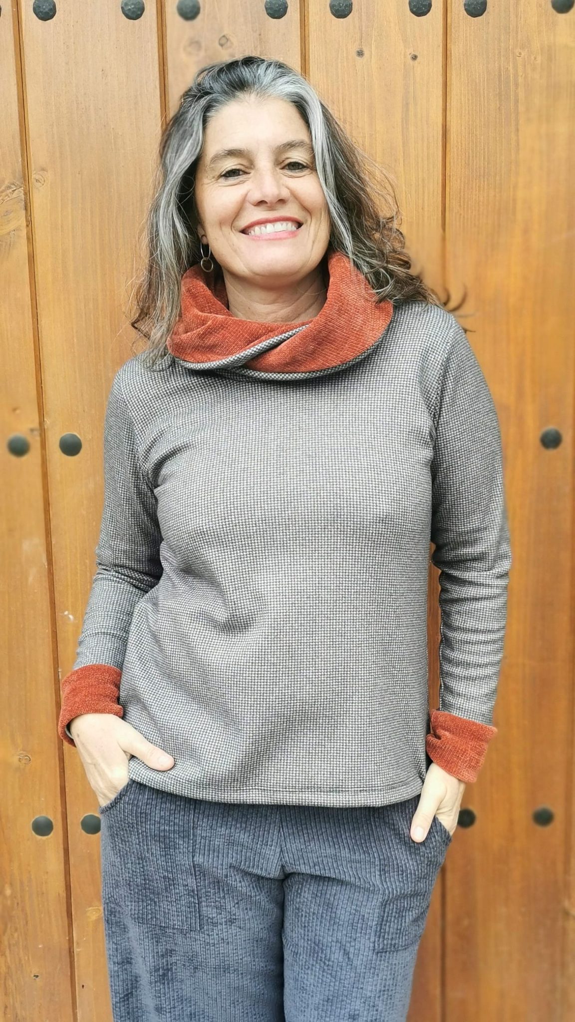 El Jersey FLOW es una pieza práctica, cómoda y femenina. Combínala con falda o pantalón.